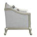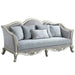 With a timeless silhouette influenced by French beauty, this Qunsia sofa makes a gracious statement in a comforting light gray linen upholstery fabric. Delicate curves invite the eye, while cabriole legs the champagne wooden trim that adds visual impact. Accent pillows in varying prints lend a look that's polished, yet impressive.