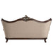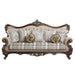 Embrace the essence of lavish living into your home with this Ragnar sofa. Highlighting detailed carvings that naturally follow with the elegant curves of the rolled arms that make a transition to the wood-trimmed arched backrest which features a camel hump wooden frame silhouette. The front legs and the front apron boast beautiful carved detail. Sit in comfort on the pocket coil seating and the included 7-throw pillows.