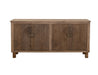 4 Door, Console. The Rainbow Console is skillfully crafted from melina wood. It showcases exquisitely designed doors that artfully replicate the graceful shape of a rainbow. Take a moment to admire the intricate wood grain detailing, perfectly complemented by the console's elegantly rounded legs. This remarkable piece is a captivating and sophisticated addition to any living space.