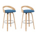 Sonia - Modern Swivel Bar Height Stool (Set of 2) - Blue Upholstered Seat And Patterned Oak Wood Finish