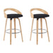 Sonia - Modern Swivel Bar Height Stool (Set of 2) - Black Upholstered Seat And Patterned Oak Wood Finish