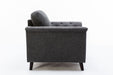 - Elevate your home's interior with the Stanton Linen Loveseat. This exquisite piece of furniture seamlessly combines classic aesthetics with modern comfort, making it the perfect addition to any living room or entertainment space. The flared tufted arms not only add a touch of sophistication but also provide extra comfort and support for your arms as you relax. The dark finish solid wood legs not only provide stability but also complement the upholstery, creating a harmonious and luxurious aesthetic. Featuring a comfortable and supportive seating experience for lounging with a good book or entertaining guests. Whether you are hosting a gathering or simply relaxing after a long day, this chair is your ideal companion.