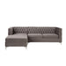 Draped in striking velvet, the Sullivan L-shape sectional sofa set makes a big impression. Button tufting bedecks the tight seatback and continues along both sides of its high shelter armrests. Nailhead trim and metal bracket legs add shine to this gorgeous set, while pocket coil seat construction ensures years of comfort.