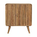 - Solid Wood T-bar Ridged Cabinet - This beautiful T-bar Ridged Cabinet has been constructed from 100% solid mango wood and has a lovely natural oak-ish finish. It has features such as t-bar handles on the doors, 2 handy shelves inside as well as 4 Nordic style legs for stability and a modern touch. Make full use of this piece in your living room by letting it store all your belongings while providing charm.