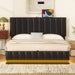 Queen Size Upholstered Bed With Hydraulic Storage System And LED Light, With Sockets And USB Ports - Black