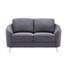 Slightly rounded and slopped armrests are used to create a modern silhouette on the Yuina loveseat. The softness of the gray linen upholstery counterbalances the gold metal legs for a clean stylish look, also making it easy to style with its neutral tones. Plush seat cushions make for a lush seating experience for you and your guests. The pinewood inner frame is resilient and will last years of use.