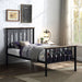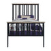 Constructed from sturdy, black metal, the Zudora bed boasts industrial charm. The frame's clean lines and robust structure give it a modern yet rustic appeal. It is designed to provide stability and durability while complementing the overall aesthetic. The headboard and footboard are adorned with slats, adding texture and visual appeal, creating a captivating pattern. The oak trim features a weathered finish, and the warm tones of the wood contrast beautifully with the black metal, creating a striking piece. The combination of the black metal frame, slatted headboard and footboard, and antique oak trim results in a harmonious blend of industrial and rustic elements.